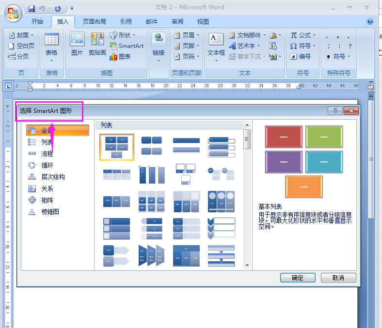 4、进入选择SmartArt图形对话框;