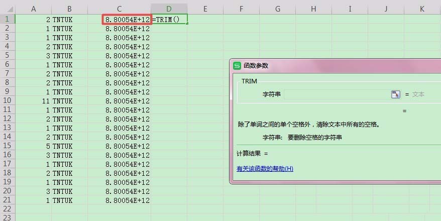 10、C列的其他用科学计数法表示的数,也都用数值表示法表示了。