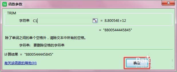 7、此时,TRIM函数中,字符串就会显示C1,点击【确定】。