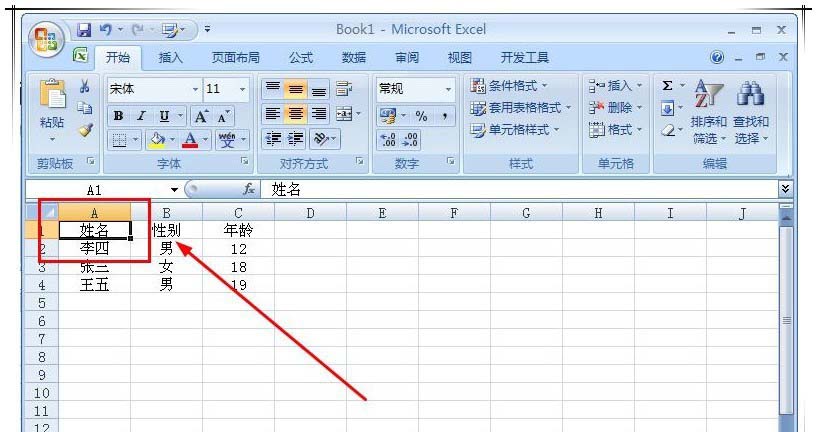 3、然后在表1中,选中左上角第一个有数据的单元格。