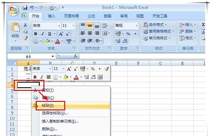 5、再接着按下ctrl+C复制选中数据,切换到表2中,在要保存数据的行的第一个单元中点击一下,再ctrl+V粘贴。