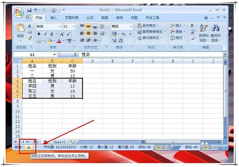 6、再次点下 excel应用程序状态栏左侧的宏录制按钮,停止宏录制。
