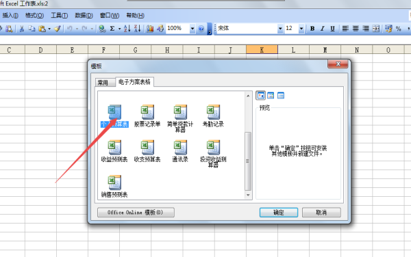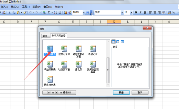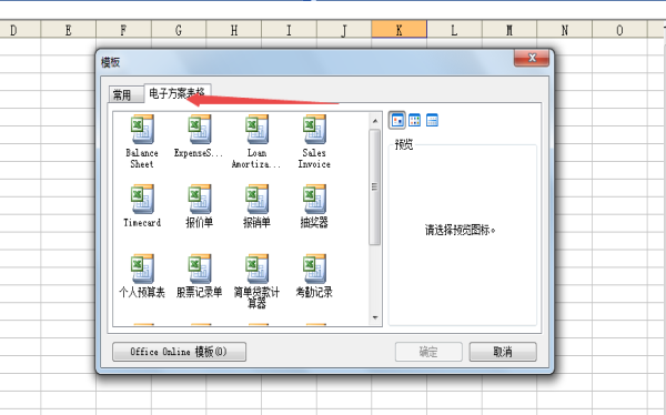 5、在”模板“的对话框中单击”电子方案表格“选项卡。