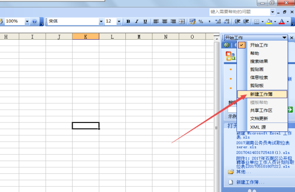 3、在任务窗格的最上方选择下拉列表,单击”新建工作簿“命令。