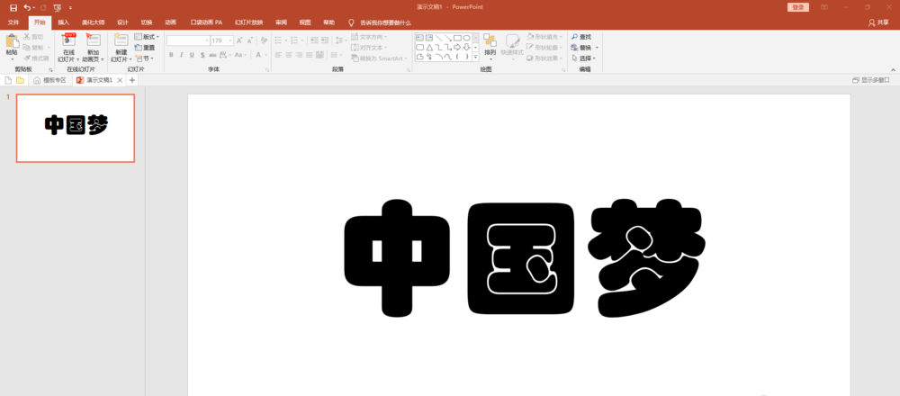 4、在文本框中输入文字内容,如中国梦。设置格式:字体、字号等。然后复制文本框,粘贴为图片后保存。