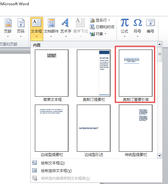 word2010想要插入一个奥斯汀重要引言文本框,该怎么插入呢?下面我们就来看看详细的教程。
