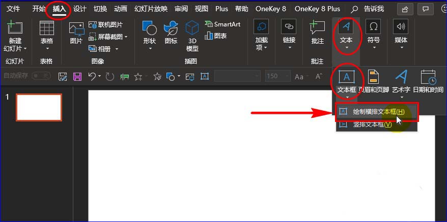 1、首先打开PPT软件,在PPT幻灯片中插入横排文本框,然后在文本框中输入文字。如图所示: