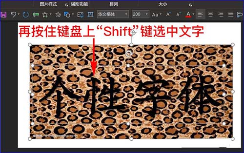 5、接着我们先选中图片,再按住键盘上“Shift”键选中文字。(必须先选中图片)如图所示:
