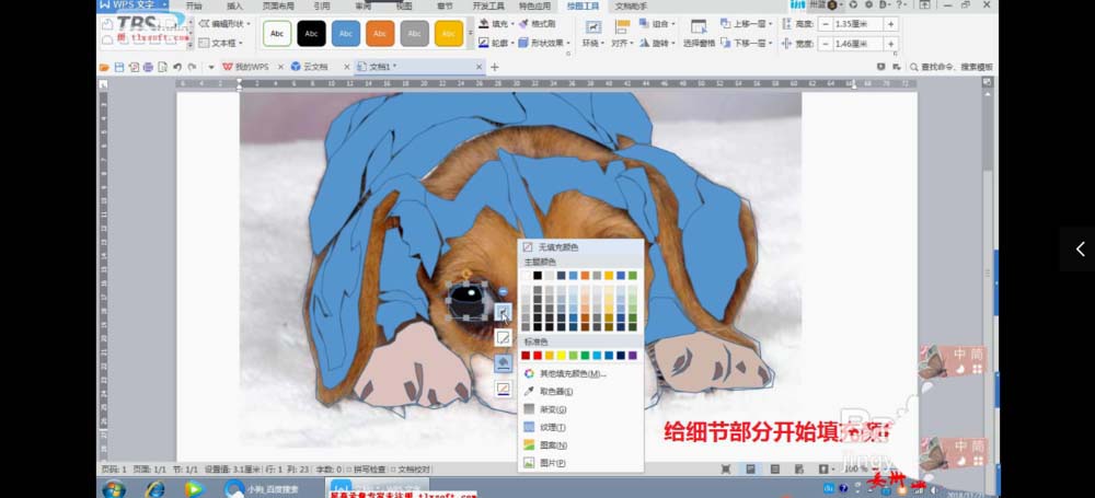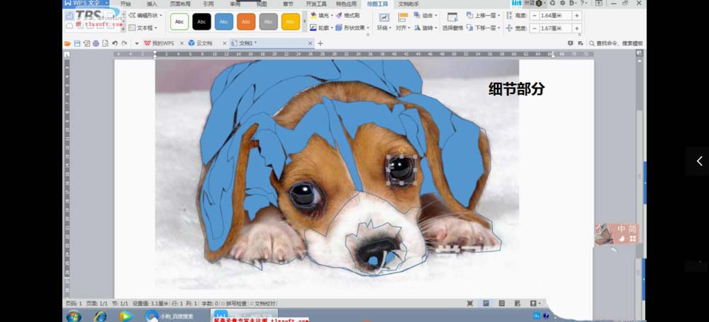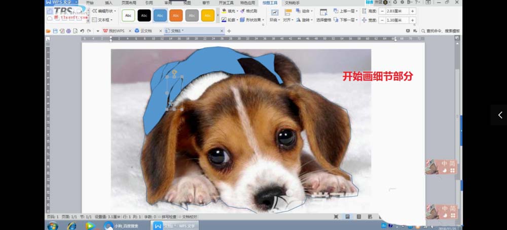 5、点击插入按钮,找到任意多边形,使用该工具对图片进行描边创作。