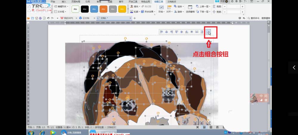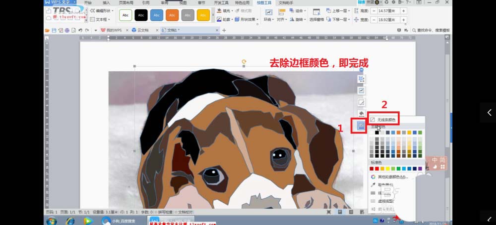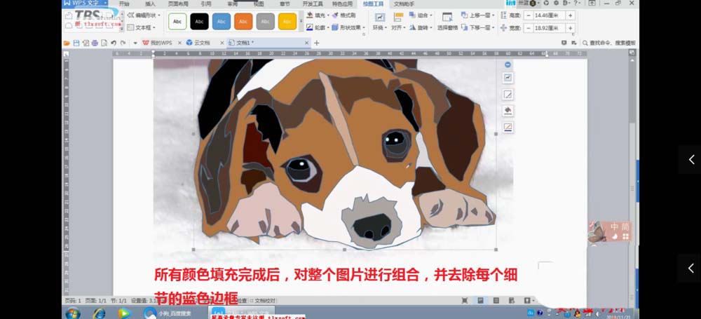 8、所有颜色填充完成后,对整个图片进行合并,并去除边框的辅助线。