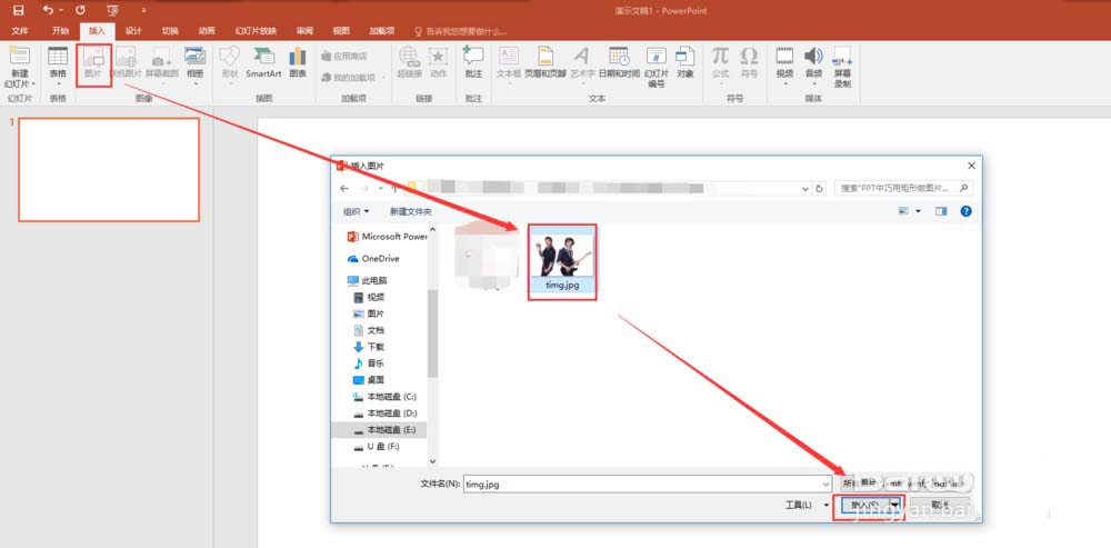 2、找到菜单栏中插入菜单,在插入菜单栏中找到图片命令,单击图片弹出插入图片窗口,在插入图片窗口中选择一个图片素材,选中点击插入。