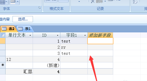 2、选中了表的选项之后,点击表中一个字段的选项。