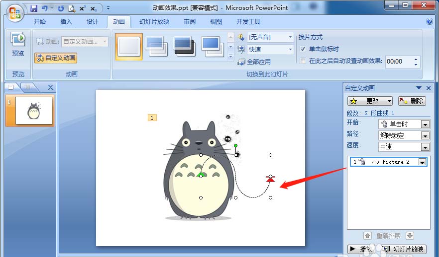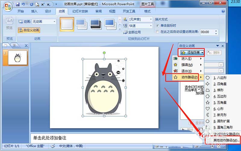 PPT中的图片图形可以添加路径动画,该怎么让龙猫图片曲线平移呢?下面我们就来看看详细的教程。
