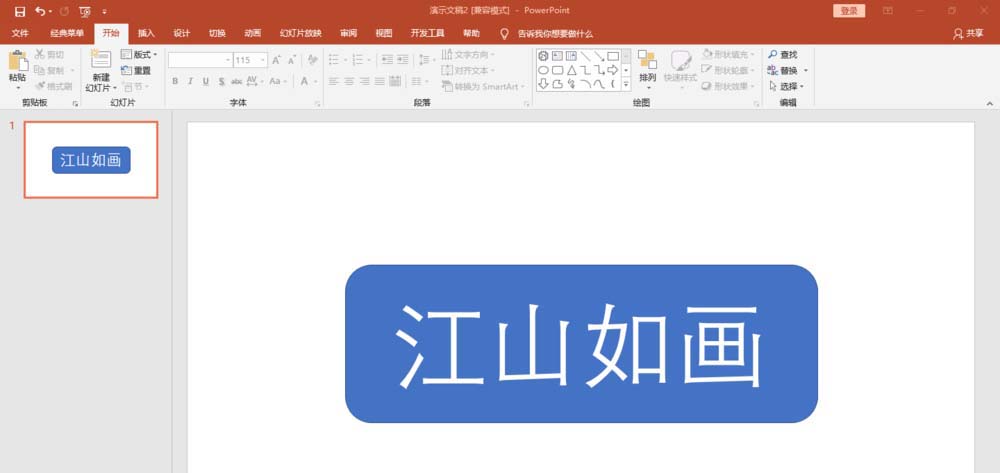 1、幻灯片中插入圆角矩形,圆角矩形中输入文字,设置喜欢字体、适中大小。