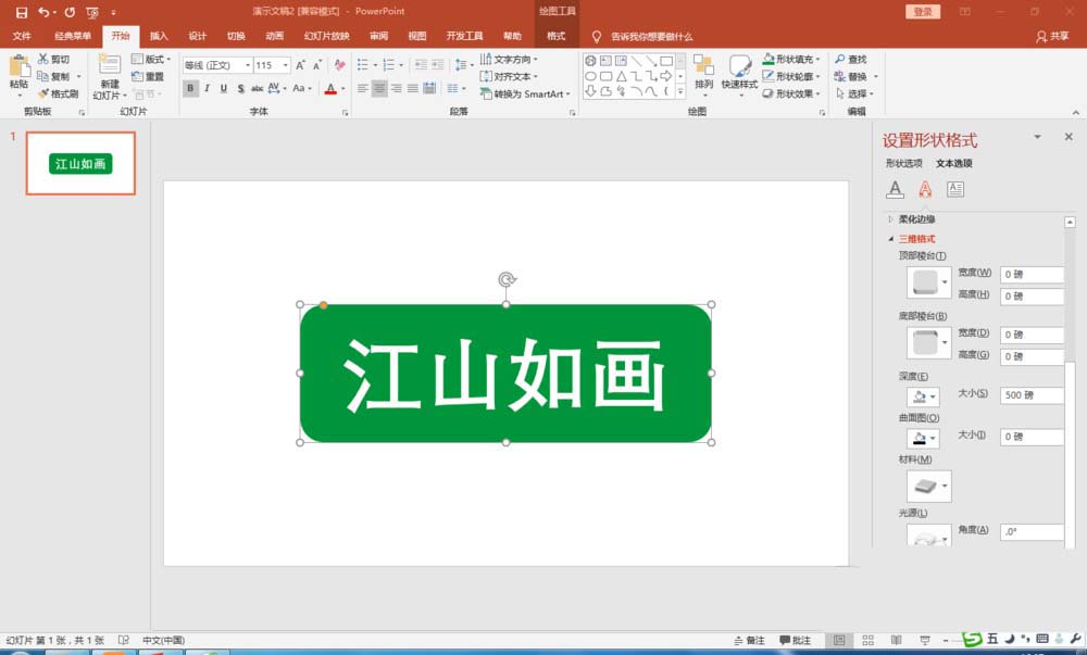 5、调整矩形的大小。调整文字的填充颜色及深度颜色。