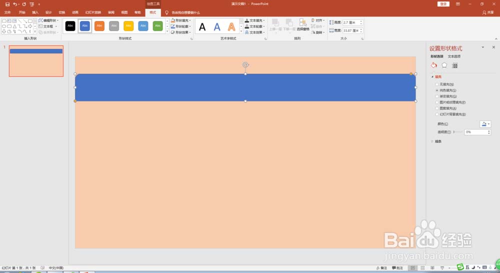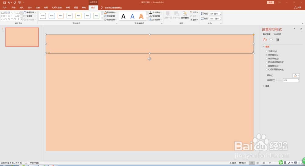 2、“插入”“形状”“矩形”,选择“圆顶角矩形”,鼠标画出与幻灯片等宽,高度适当的“圆顶角矩形”。