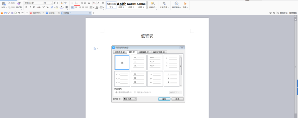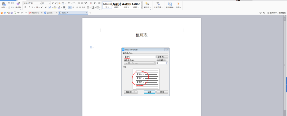 2、选择任意一种编号形式后,点击”自定义“,在新弹出的”自定义编号列表“中,输入”星期“,确定。自动”星期一“……按回车键后,依次出现”星期二“”星期三“……