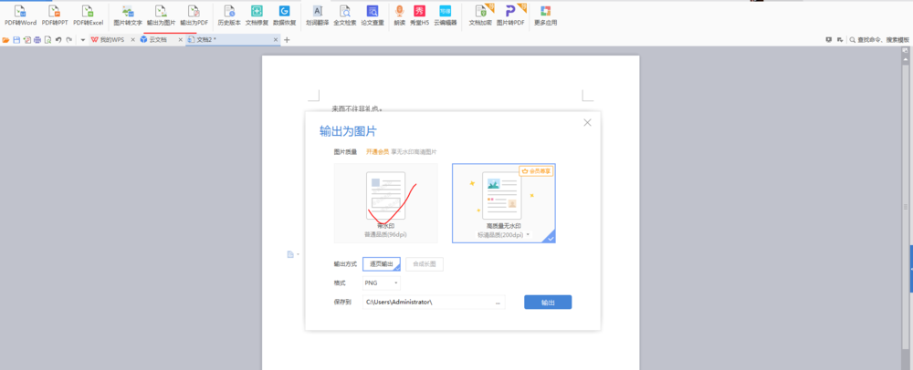 找到”特色应用”中的“输出为图片”,点击“带水印”,输出,则文字转化为图片形式。