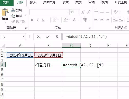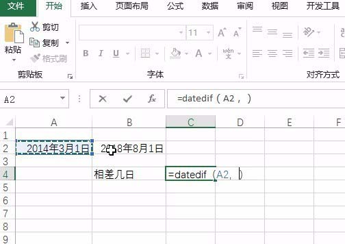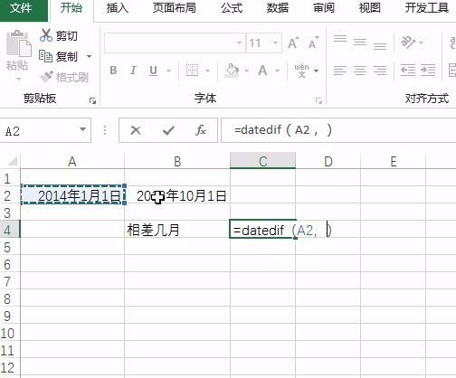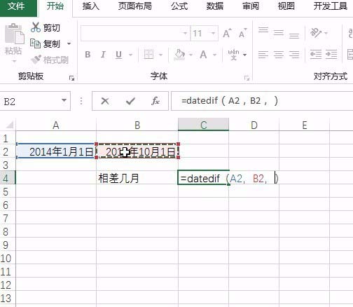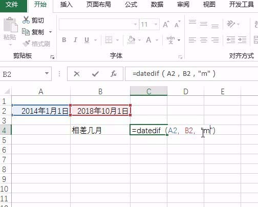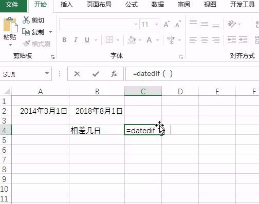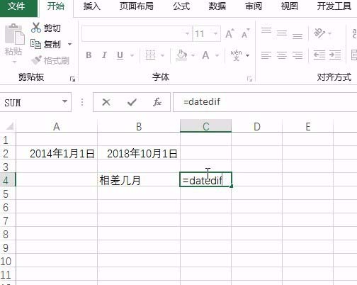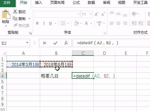 2、输入函数datedif