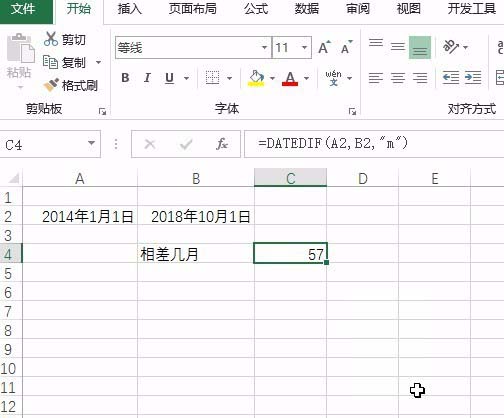 6、确定后即可看到相差57个月