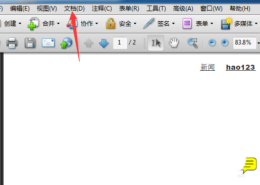 2、进入到了的Adobe Acrobat的文件当中,点击 文档 的菜单。