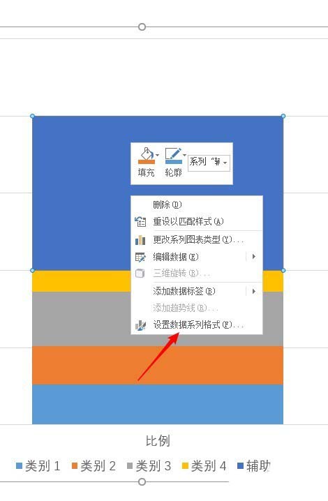 8、左键点击选中辅助数据所在的柱形,点击右键“设置数据系列格式”。