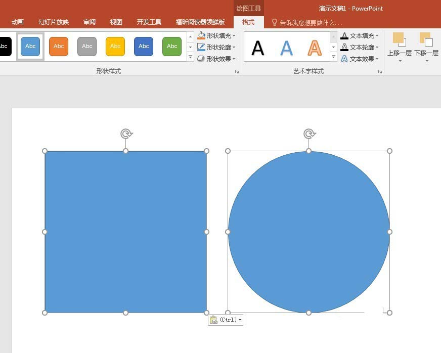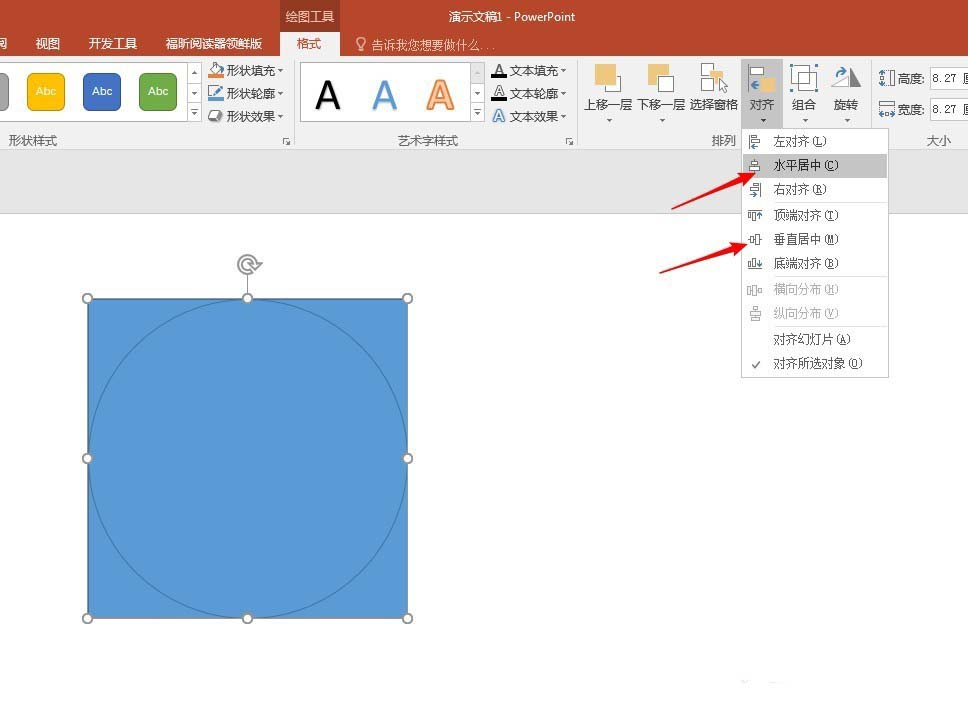 11、选中两个图形,使两个图形左右居中和垂直居中。