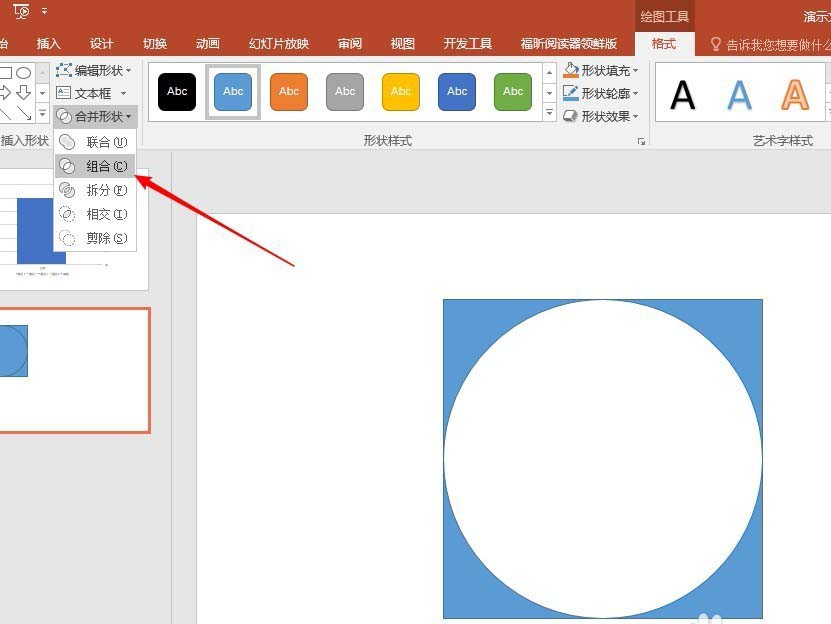 12、点击“合并形状”—“组合”,得到了一个镂空的正方形。