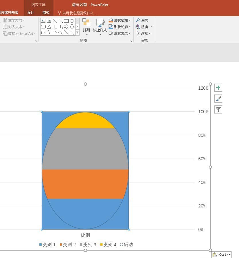 17、如果要效果更好,可以把幻灯片背景颜色和镂空图形设置为同一颜色,这样就得到了一个完全为圆形的柱形比例图。