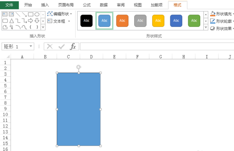 2、执行插入-形状命令,选择矩形并绘制一个矩形。