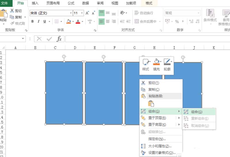 5、按住ctrl键依次选择图形,右键单击选择组合,将所有的形状组合在一起。
