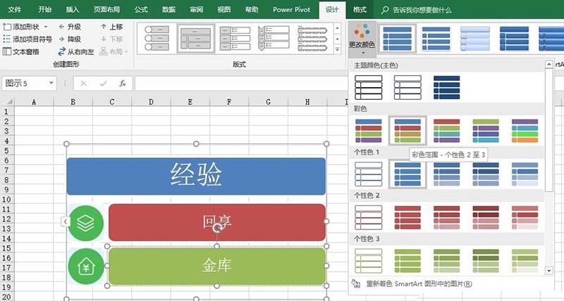 5、可以通过菜单中的“更改颜色”按钮,来修改图形的颜色