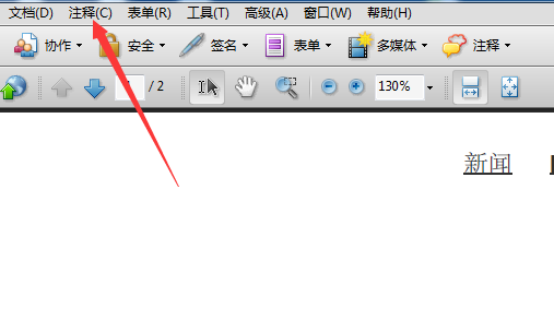 2、点击了的Adobe Acrobat的菜单中的注释的菜单。