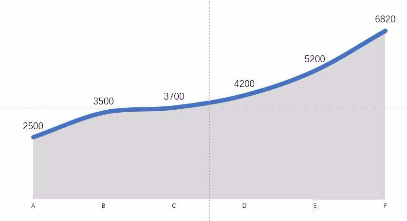 7、这样一个基本的效果图就得到了。如果适当做一些更改,那么这种图的效果会更好。比如,把线条和面积设置为渐变,给背景填充一种深色,就能得到更具质感的数据图。如下图所示。