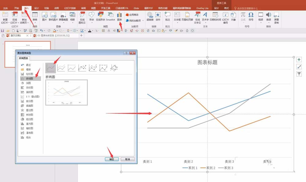 1、插入数据图,类型选择普通折线图。