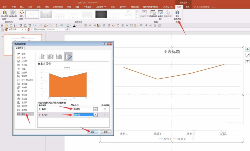 3、更改辅助数据的图表类型为面积图。