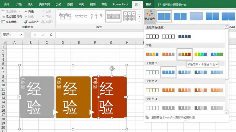 5、可以通过菜单中的“更改颜色”按钮,来修改图形的颜色