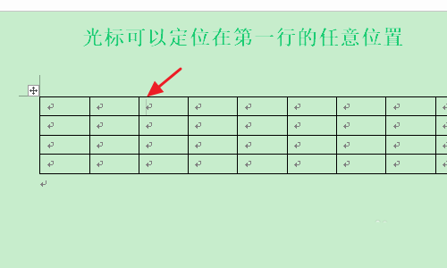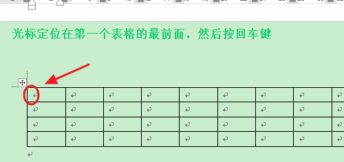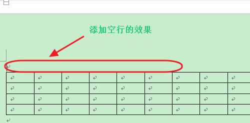 我们将鼠标光标定位在表格内的最前面(务必是最前),然后在键盘上按下回车键,此时这个表格的前面就会多出一段空行,如图所示...