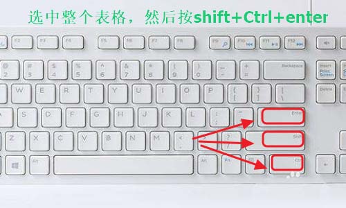 首先将这个表格全部选中,然后按住快捷键Ctrl+shift+enter,然后表格前面同样会增加空行;