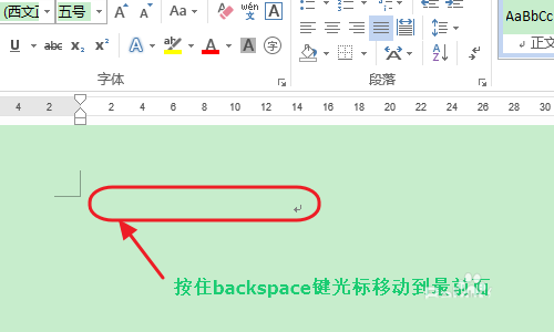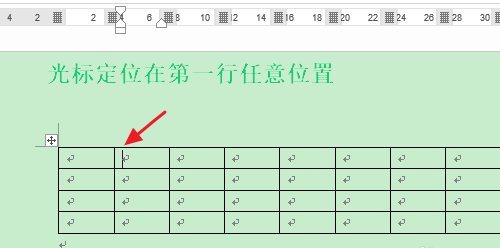 还是将光标定位在第一行任意位置,然后按下快捷键Ctrl+enter,此时页面就会变成2张,接下来我们将光标所在位置按住backspace键移动到行的最前面,这样页面恢复到一张,而表格前面有了空行;