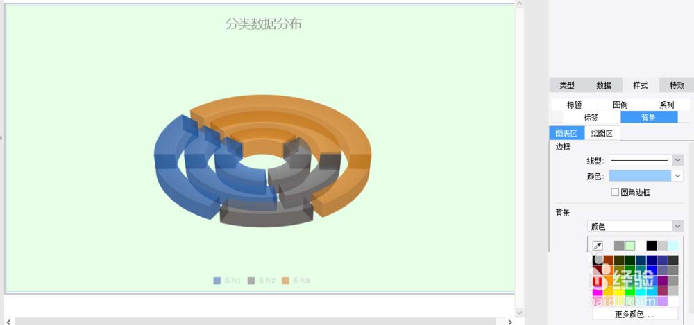 6、将选项卡切换到样式,选择背景中的图表区,设置背景为颜色,如下图所示: