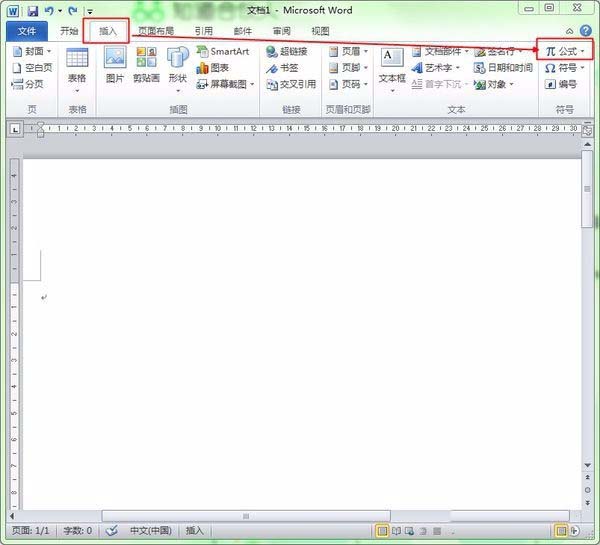 1、打开wrod程序,选择插入菜单下的公式按钮(下图红线框内)。如下图: