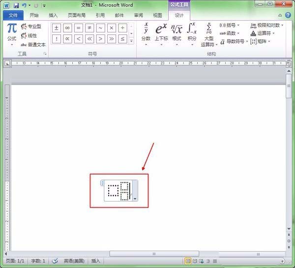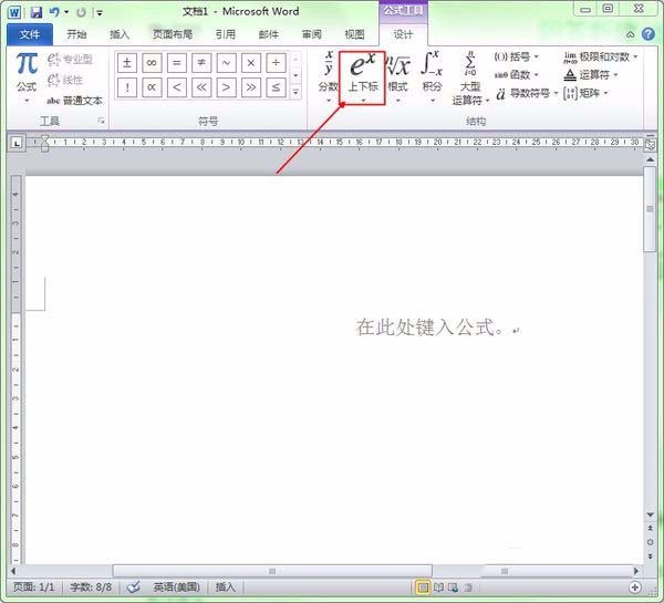 4、选择上下标公式后,在页面中就会自动插入一个公式。如下图: