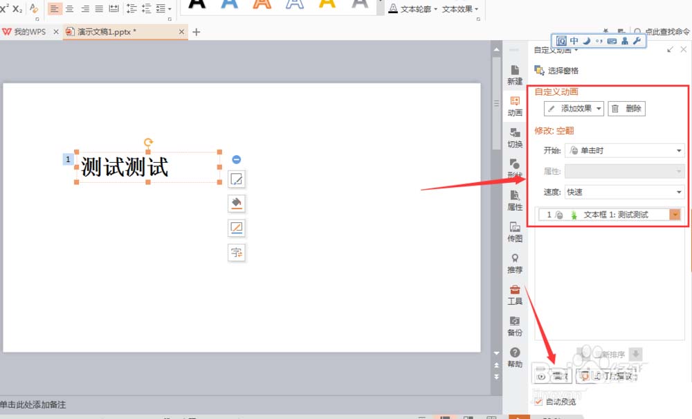 wps打开ppt文件以后想要添加动画效果,该怎么给文字添加后空翻的动画呢?下面我们就来看看详细的教程。