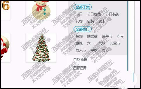 5、比如,点击:节日装饰,左边 即弹出各种节日装饰的图片。