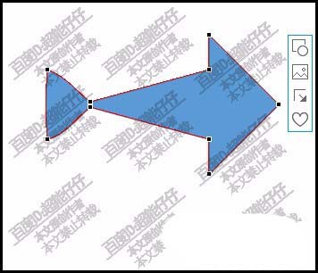 6、接着,鼠标点击鱼尾两个顶点,显示出手柄来,再调节一下,使之有一点弧度。