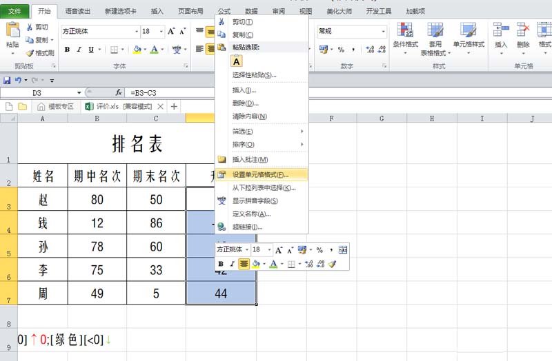 3、选择数据区域d3:d7,右键单击选择设置单元格格式。