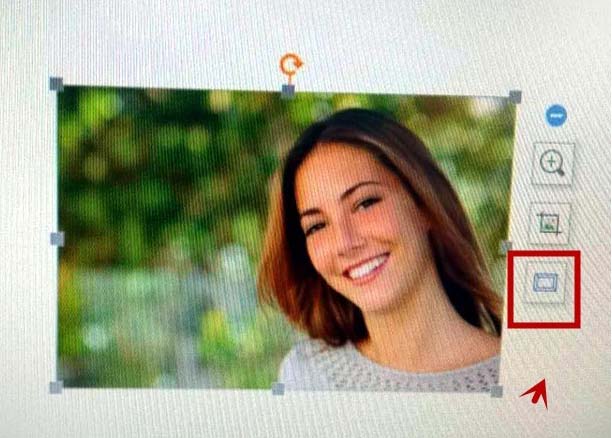 4、图片打开后,用鼠标点击图片,在图片的右侧系统弹出一个对话框,点击对话框的双正方形标志。