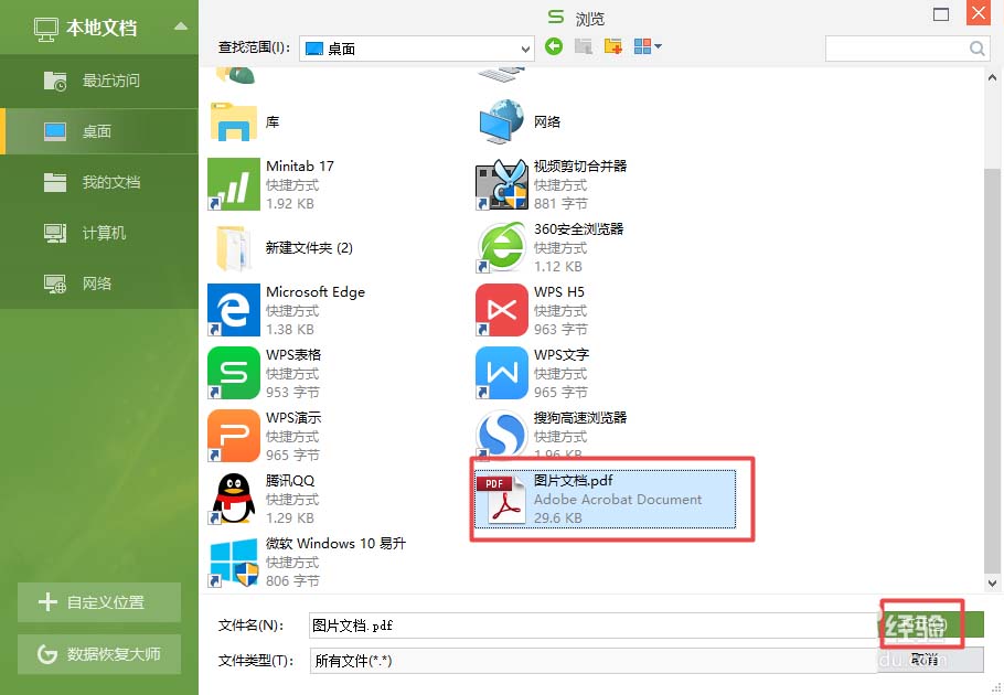 5、弹出的界面,我们找一个PDF文档,点击选中它,之后我们点击打开;
