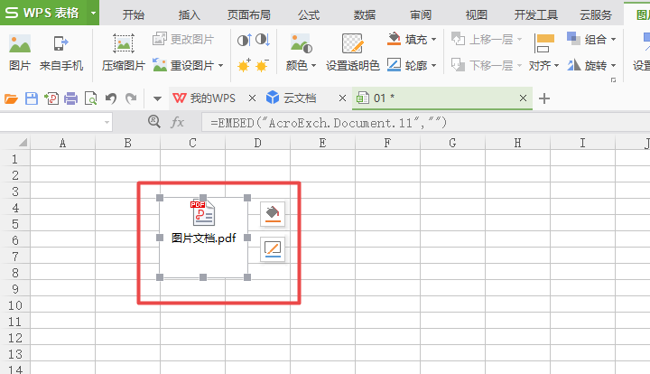 8、结果如图所示,这样我们就将PDF文档插入到WPS表格里面了,我们是可以点击打开它的,因为我们在前面已经设定了链接。相信大家现在已经会在WPS表格中插入PDF文档了。